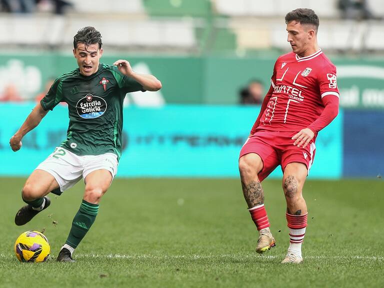 Aitor Buñuel conduce el balón ante un rival durante el Racing-Cartagena en A Malata (foto: Mero Barral para Cadena SER) / Mero Barral