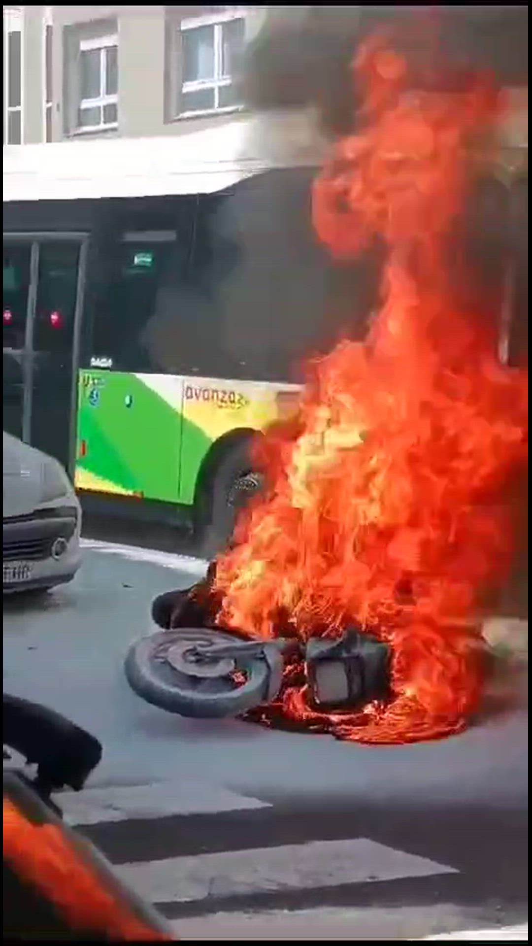 Susto este pasado sábado en Vigo. El incendio de una moto en la Avenida Atlántida y su posterior explosión, al paso de un Vitrasa, ha provocado un conato de incendio en la carrocería del autobús urbano.