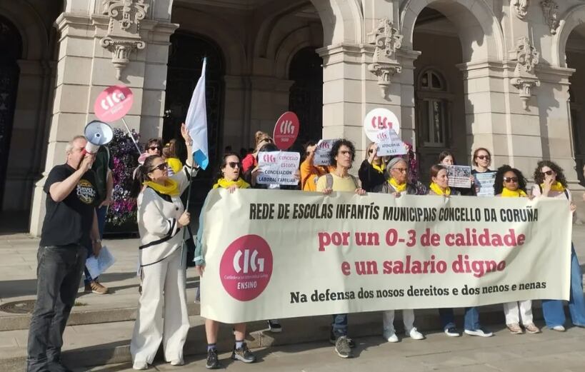Las trabajadoras de las escuelas infantiles municipales de A Coruña vuelven a ser noticia al concentrarse esta tarde en María Pita para seguir reclamando una respuesta del Concello a sus demandas. Señalan los problemas que sigue habiendo en torno a los ratios y que afectan especialmente a los niños y niñas con necesidades especiales. Dicen que no hay profesorado de apoyo suficiente y los que hay no disponen de la formación para atenderles correctamente.