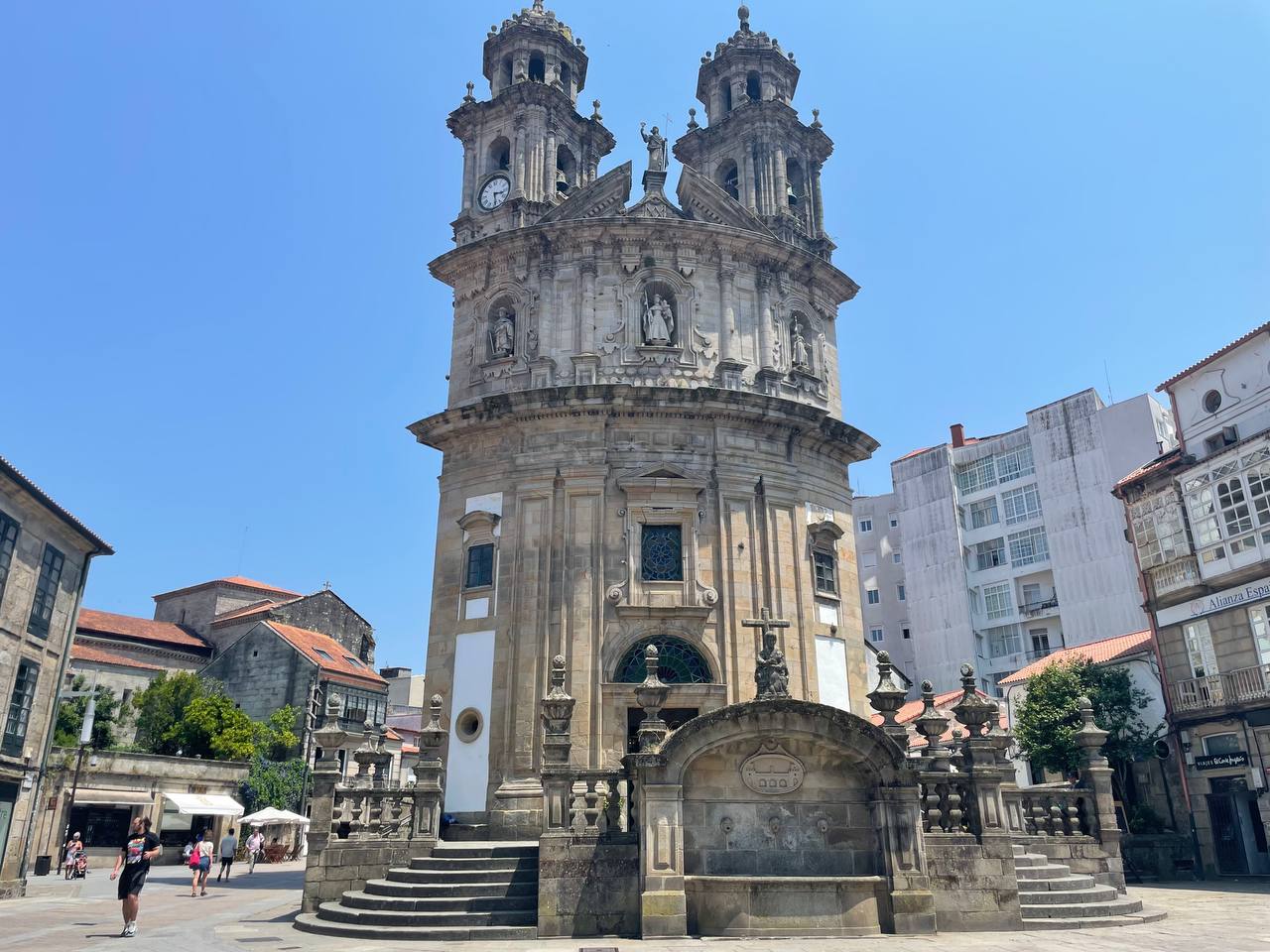Los andamios ya han sido colocados en las torres, donde se han iniciado las obras. Será entre la segunda y la tercera semana de julio cuando el andamiaje ocupe también los laterales y la parte trasera. Sin embargo, estas infraestructuras no cubrirán la fachada hasta pasado el día 10 de agosto, fecha de la celebración de la misa de la Peregrina. El evento litúrgico será además oficiado por el arzobispo de Santiago, que participará después en la procesión. Durante este tiempo se colocará también una plataforma que garantice la visita segura a los tejados de la iglesia. Además, con respecto a las fechas de las obras, el presidente de la Cofradía de Nuestra Señora del Refugio, Juan Carlos Aguilar, explicó en Radio Pontevedra que es obligado realizarlas en verano debido a los trabajos de impermeabilización.