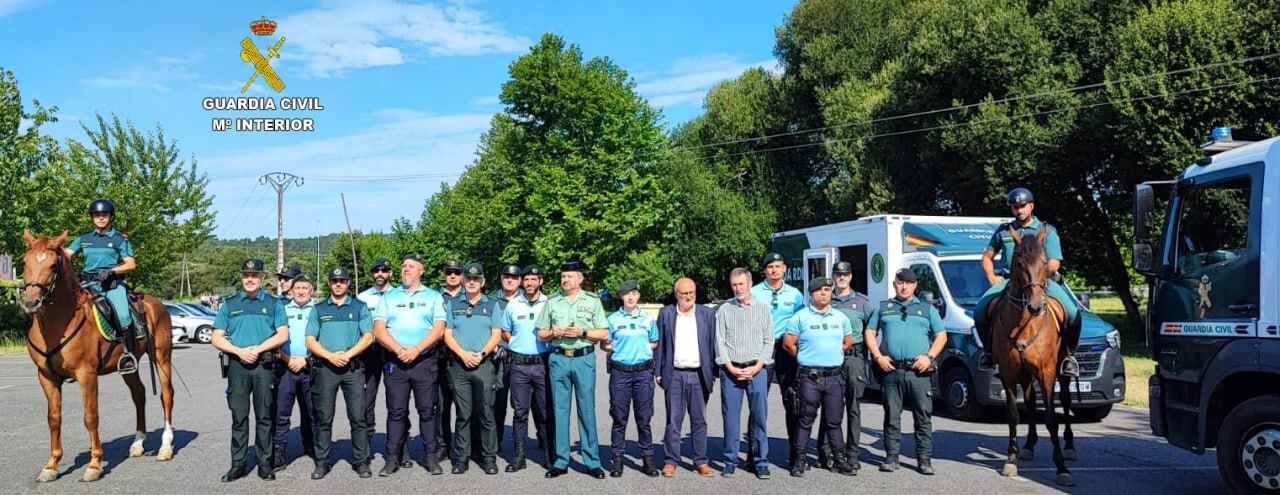 La Guardia Civil ha presentado esta mañana en el parque natural del río Barosa (Barro) a los agentes españoles y portugueses que participarán en la seguridad del Camino de Santiago a su paso por la provincia de Pontevedra. El objetivo principal es mantener los niveles actuales de seguridad en el Camino a su paso por la provincia en la demarcación de Guardia Civil, participando los agentes de la Guardia Nacional Republicana (GNR) de Portugal, la oficina móvil de atención al peregrino (OMAP) de la Comandancia de Pontevedra, agentes del Escuadrón de Caballería de la Guardia Civil y patrullas de Seguridad Ciudadana. Los Agentes pertenecientes al Escuadrón de Caballería de la Guardia Civil complementan la seguridad del Camino de Santiago con la prevención de incendios forestales.