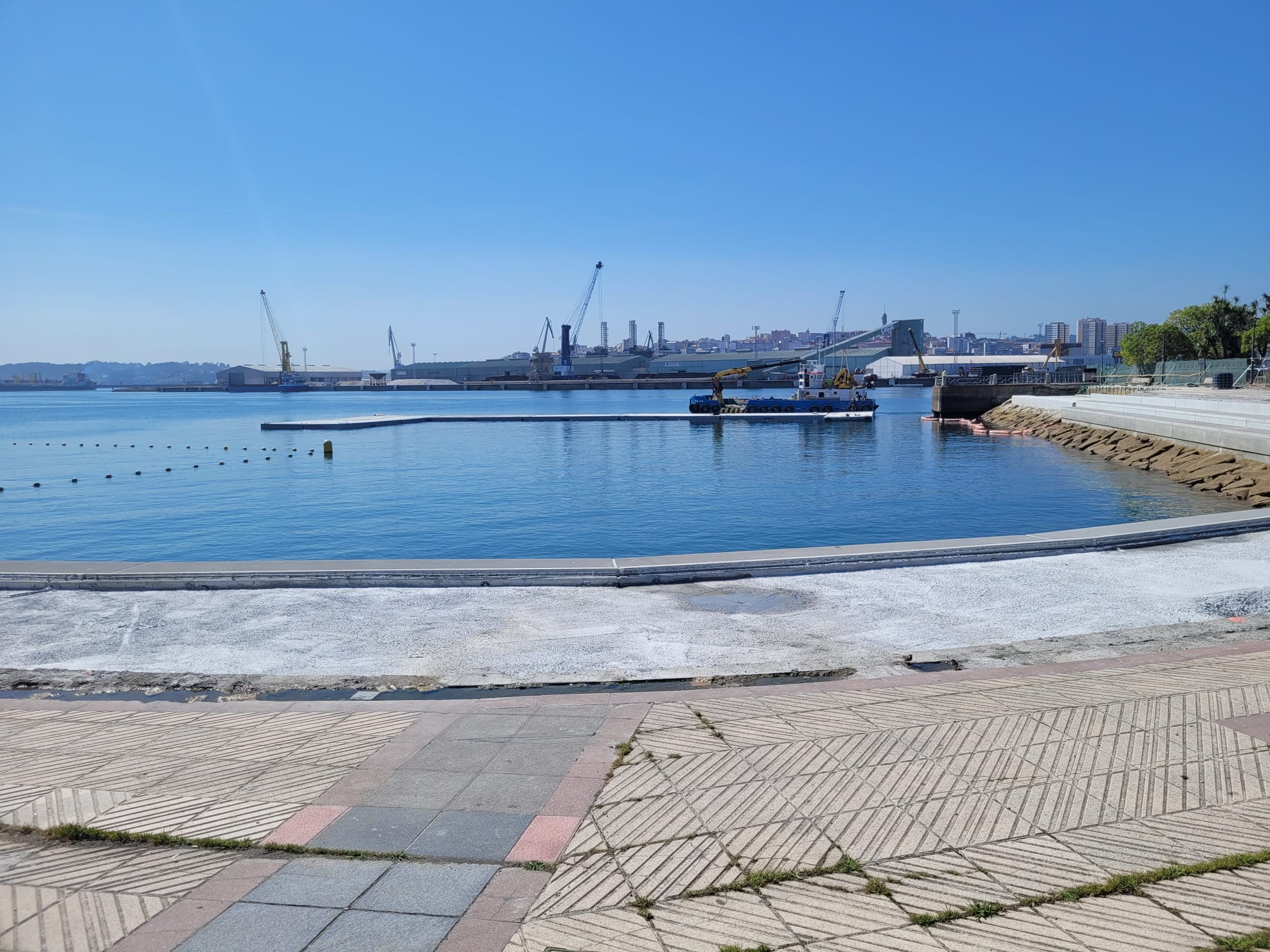A Coruña ha finalizado la primera fase del montaje de la futura plataforma de baño de O Parrote. Son doce módulos flotantes de hormigón, de cinco metros de ancho y doce de largo. La siguiente fase de la obra será ejecutar el pavimento de madera y la construcción de un graderío para unas 250 personas.