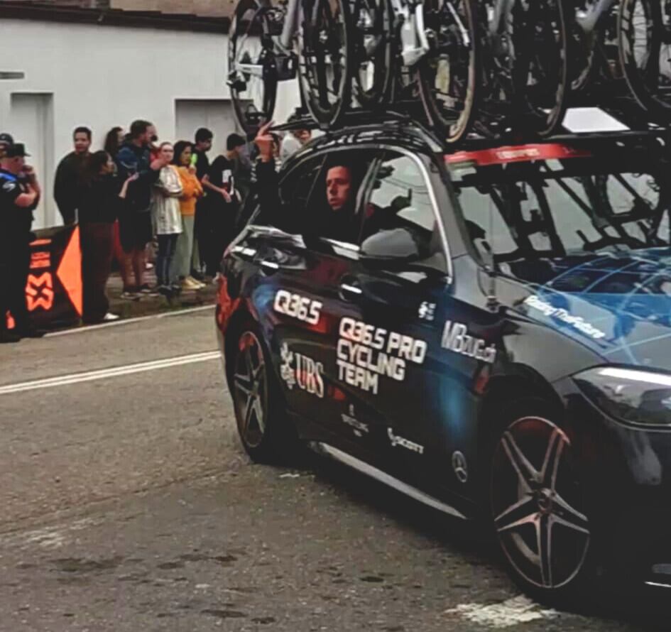 Frente a la actitud del danés, la de otros: como la de un ocupante del vehículo del Q36.5 Pro Cycling, equipo que también participa en la vuelta, que pasaban en la rotonda del Cristo de Belén, haciendo una amplia peineta a quienes allí se concentraban.