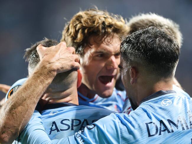 El delantero del Celta de Vigo Iago Aspas celebra su gol durante el partido de Liga Europa entre Celta de Vigo y PAOK de Salónica. EFE/ Salvador Sas / Salvador Sas (EFE)