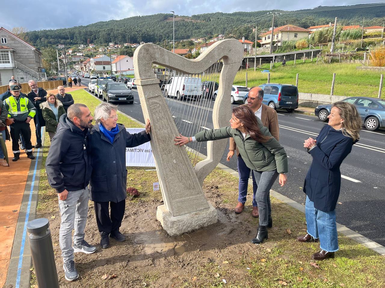 La PO-308 a su paso por Combarro cuenta desde este viernes con una escultura en memoria de los fallecidos en accidentes de tráfico. Se trata de un arpa, que han bautizado como ‘El arpa del silencio’ en recuerdo de las víctimas “por las vidas truncadas han dicho, y por las palabras que nunca se llegaron a pronunciar”, en palabras de la presidenta de Stop Accidentes Galicia; Jeanne Picard.