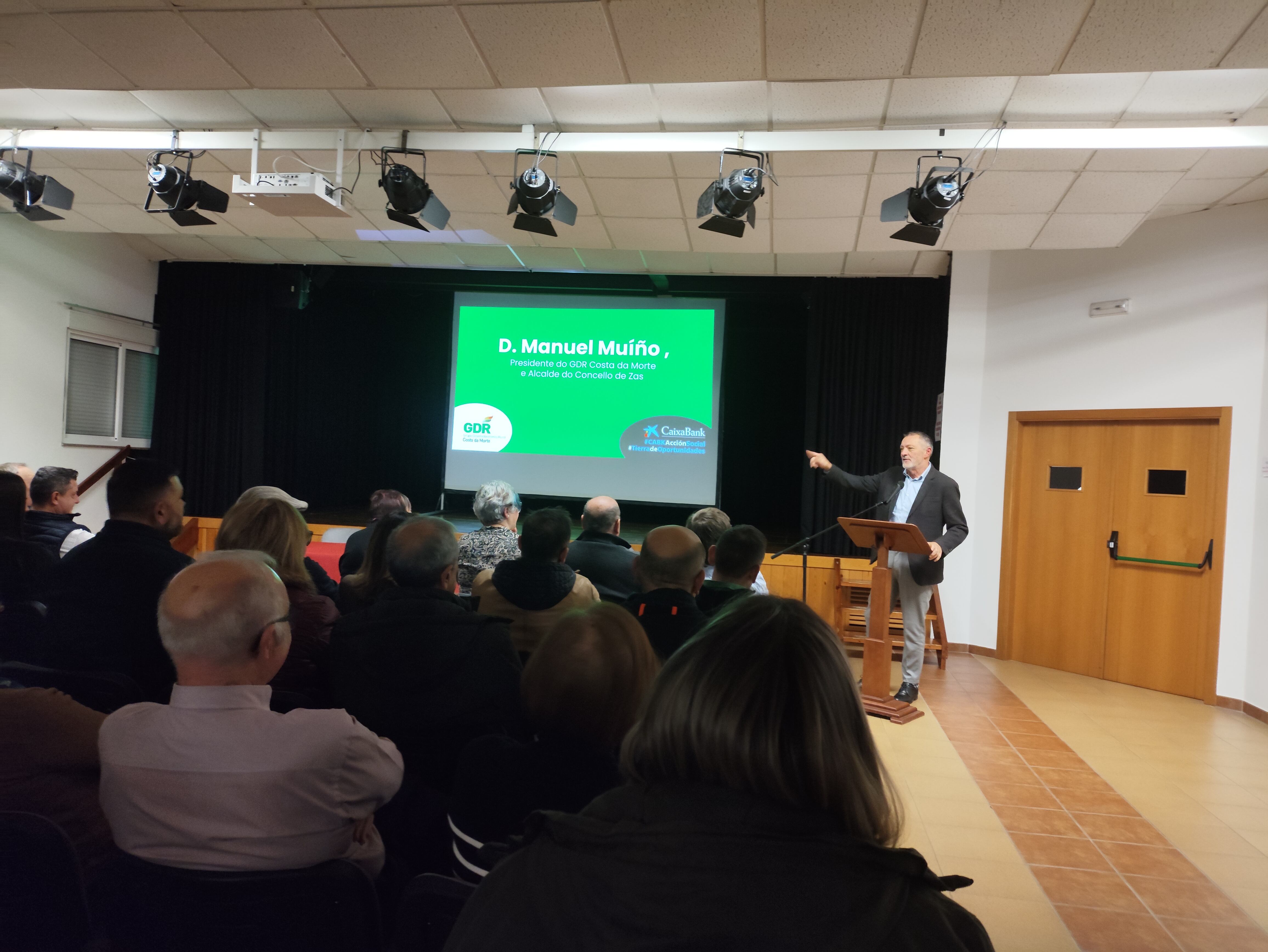 O Centro Sociocultural de Baio acolleu este 2 de decembro o acto oficial de presentación dos vídeos do proxecto “Tierra de Oportunidades 2025 – Costa da Morte”, impulsado polo GDR Costa da Morte co apoio de CaixaBank. Preto de 50 persoas asistiron a unha xornada centrada no emprendemento rural e nas oportunidades de desenvolvemento económico da comarca.