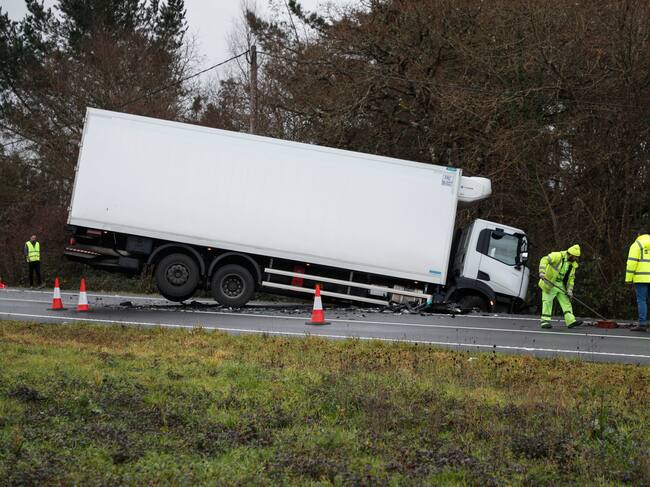 LUGO, 12/01/2026.- Dos personas han perdido la vida este lunes en un grave accidente de tráfico que se produjo en el municipio de Lugo, a causa de la colisión frontal entre un camión y un turismo. A causa del accidente, fallecieron los dos ocupantes del turismo. El conductor del camión no presentaba heridas de consideración. EFE/ Eliseo Trigo / Eliseo Trigo (EFE)