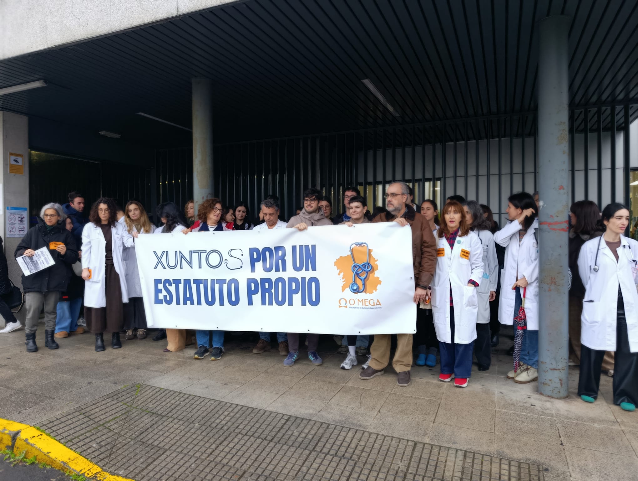 La huelga de médicos convocada por los sindicatos O’Mega y SIMEGA ha vuelto a dejarse notar este miércoles en A Coruña, donde los facultativos se han concentrado a las puertas del Complejo Hospitalario Universitario (CHUAC) para reclamar mejoras laborales y un marco propio de negociación.
