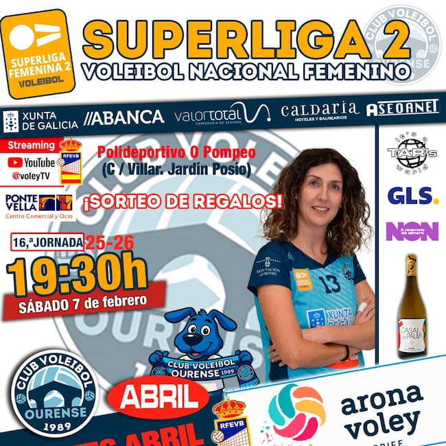 El Aceites Abril Voleyourense afronta este fin de semana una nueva jornada de la Superliga 2 Femenina, en la que recibirá en el Polideportivo O Pompeo a Arona, rival exigente y de alto ritmo competitivo.