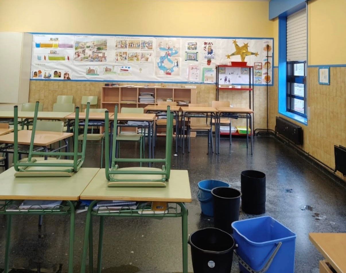 La clase de 5ºB, la más afectada por las goteras