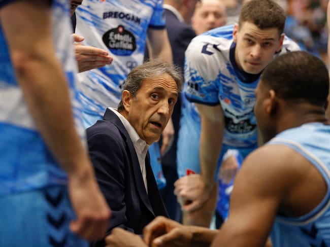 LUGO, 07/02/2026.- El entrenador del Breogan, Luis Casimiro, da instrucciones a sus jugadores durante el partido de Liga Endesa de baloncesto entre el Breogan Lugo y el UCAM Murcia, este sábado en el Pazo dos Deportes de la capital lucense. EFE/ Eliseo Trigo / Pedro Eliseo Agrelo Trigo (EFE)