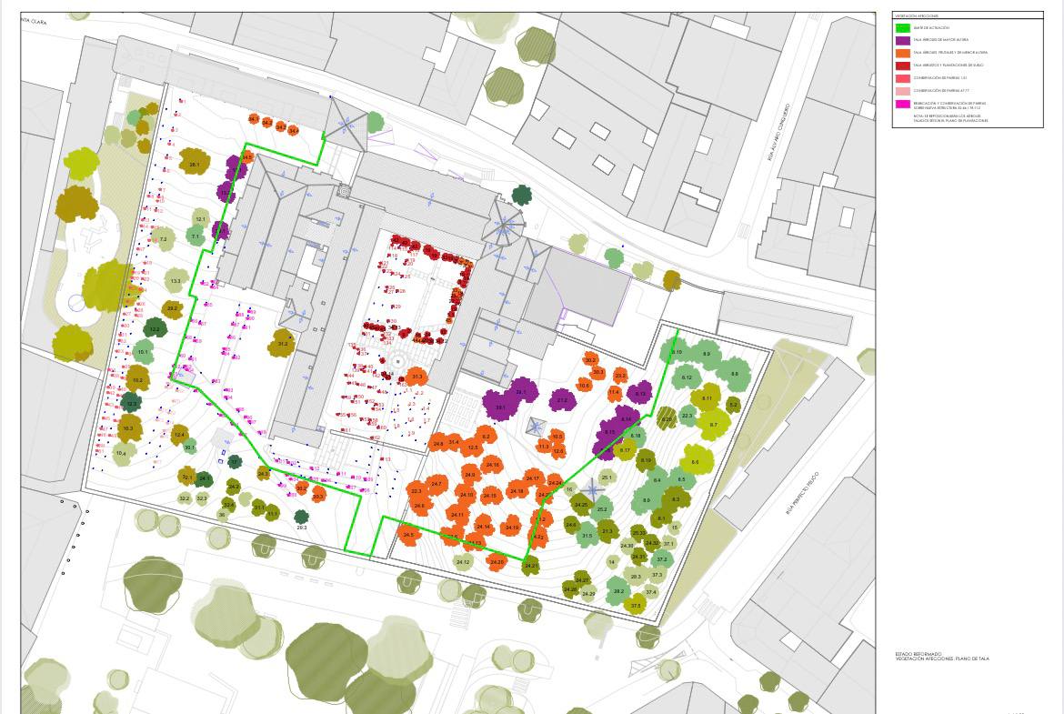 La actuación en los jardines de Santa Clara incluye la tala de 58 árboles y 96 arbustos, que según explica Rafa Domínguez, se encuentra enfermos. Sin embargo, el portavoz socialista Iván Puentes califica de “auténtica deforestación” esta acción, argumentando que es demasiada casualidad que los árboles a talar coincidan con el perímetro de lo que será la ampliación del Museo en Santa Clara.