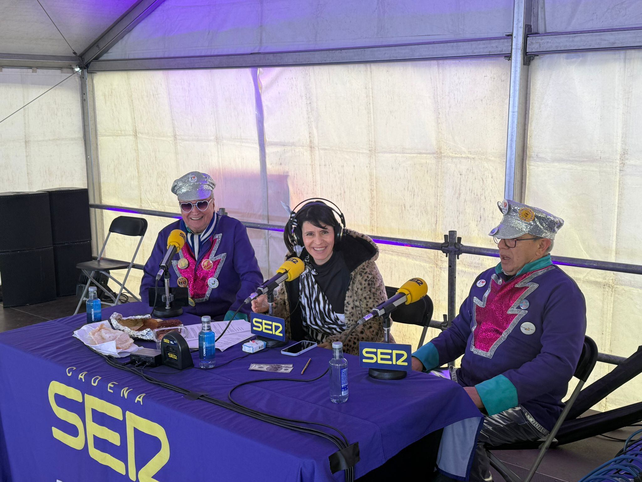 “Me están flanqueando As Toliñas… esto es de estar a gusto”, se escuchaba en directo. Y ellas, recién “saliditas de casa” (bueno… “xa levamos un ratiño por aquí”), llegaban con la verdad universal del Entroido: