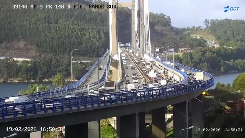 Colas kilométricas en la AP-9 debido a un accidente en el Puente de Rande