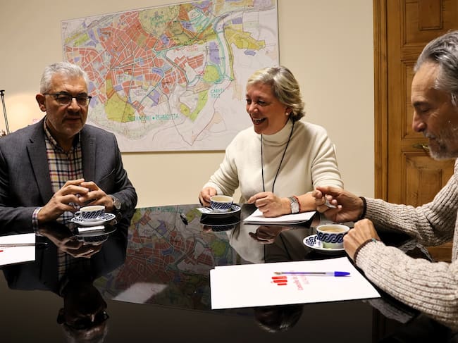 Los concejales Miguel Fernández y Pablo Permuy en el día de su reincorporación a la gestión municipal junto con la alcaldesa, Paula Alvarellos.