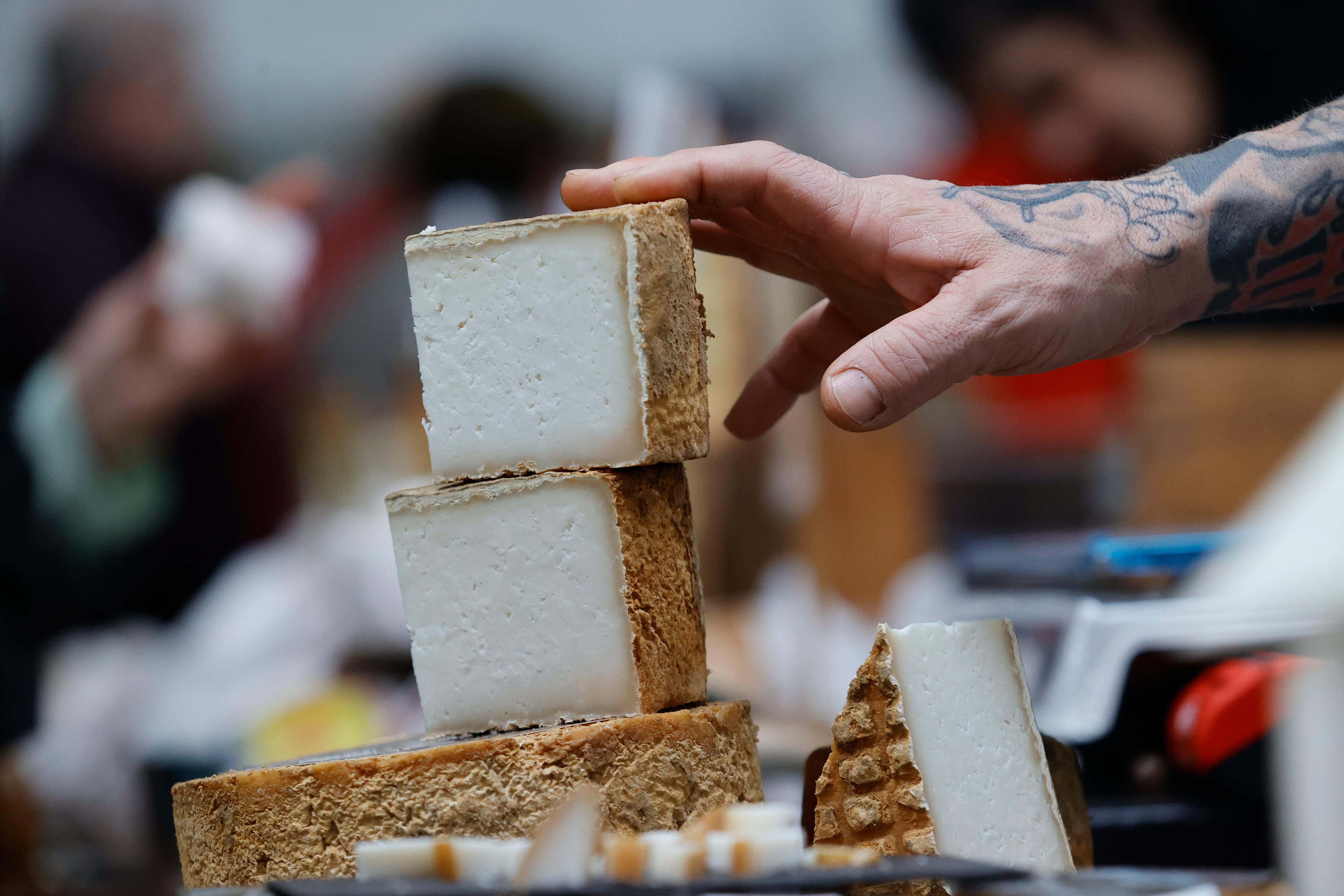 Más de la mitad de los puestos que se pueden visitar este domingo son queserías, que exhiben lo mejor de sus catálogos, con variedades de Galicia, el resto de España y países como Francia, Suiza o Italia.