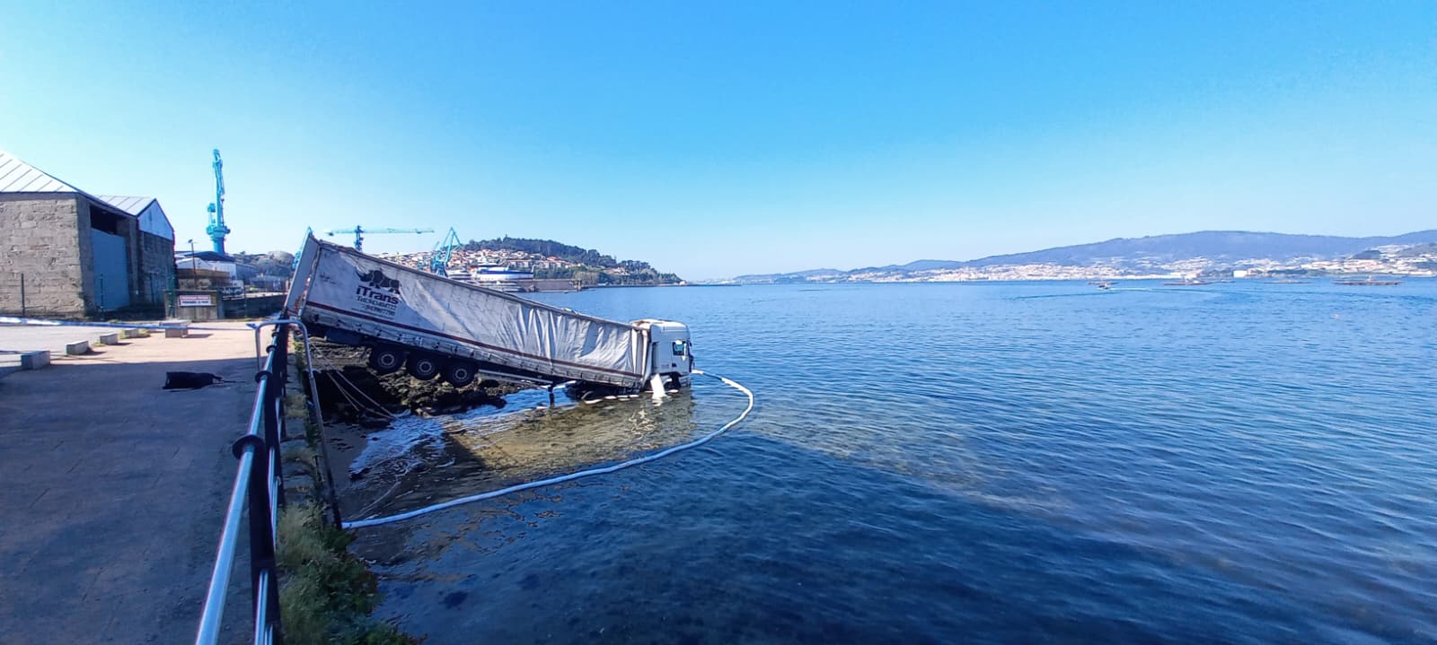 Un camión se precipitó al mar en la mañana de este martes en las instalaciones de FrioTeis, en la zona de Teis, en Vigo. El aviso se recibió en torno a las 10:00 horas a través de Salvamento Marítimo.