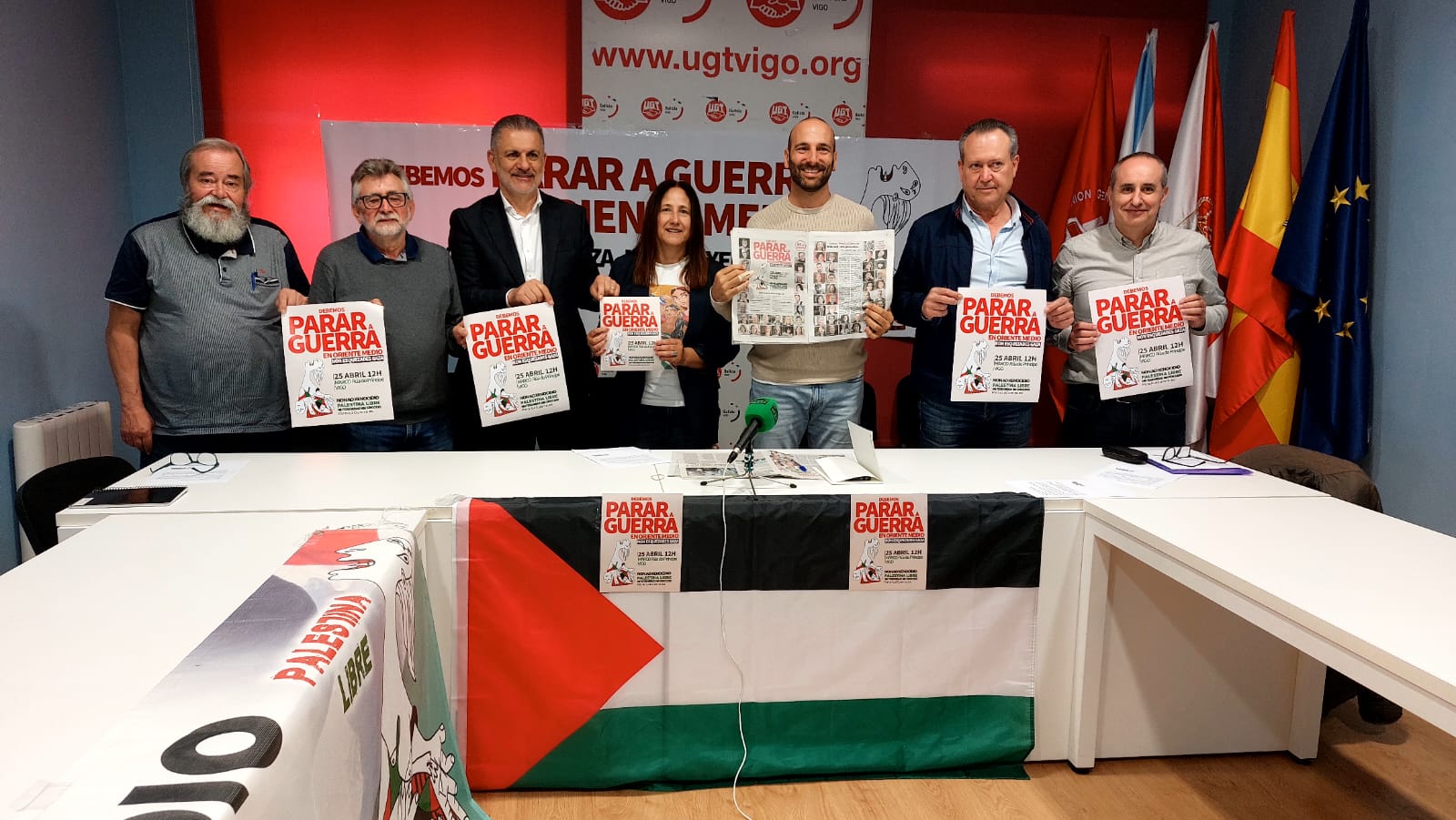 En la rueda de prensa Vázquez ha estado acompañado de representantes de otras organizaciones como el PSdeGalicia, UGT, CCOO, Sumar, la plataforma SOS Sanidade Pública, Mundo sin Guerras y sin Violencia, entre otros.