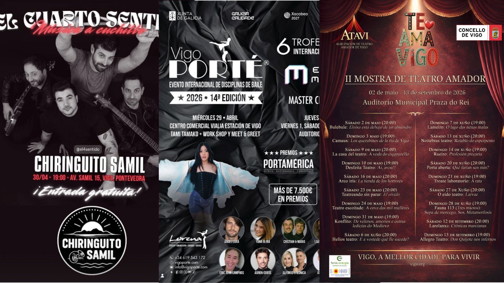 Vigo se prepara para vivir cuatro días de intensa actividad cultural. Con motivo del festivo del 1 de mayo, la ciudad y sus alrededores despliegan un abanico de opciones que garantizan ocio para todos los gustos. Esta es la hoja de ruta para no perderse nada: