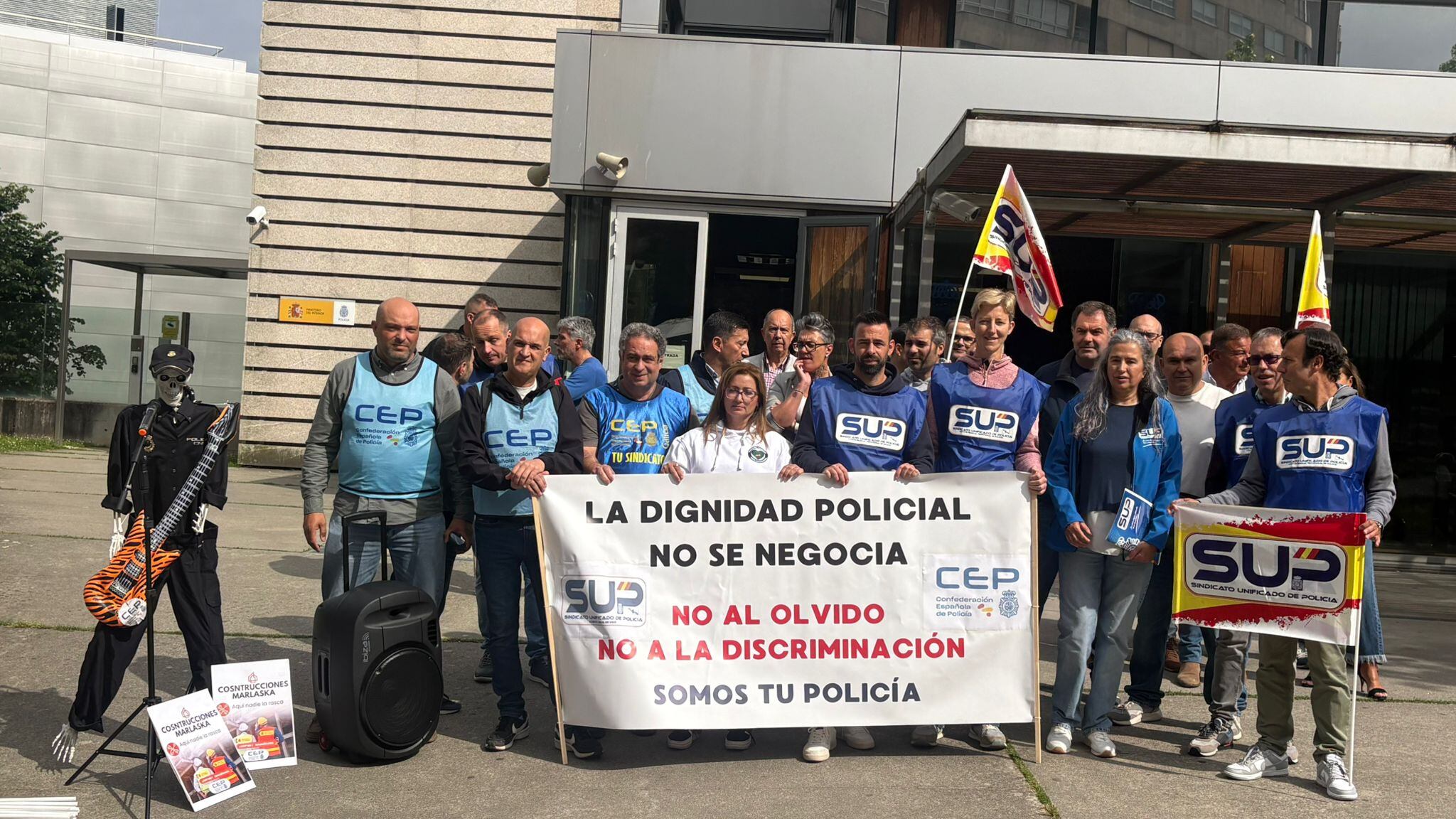 Los sindicatos policiales SUP y CEP han llevado a cabo este jueves una concentración delante de la Comisaría de Vigo para denunciar la falta de personal y las malas condiciones del edificio, inaugurado en 2013.