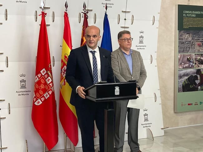 Los concejales de Gestión Económica, Enrique Lorca, y de Urbanismo, Andrés Guerrero, durante la comparecencia de prensa / Cadena SER