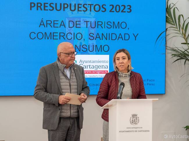 El área de Comercio, Sanidad, Turismo y Consumo del Ayuntamiento de Cartagena contará con un presupuesto de 4.812.777 euros para 2023, lo que supone un incremento del 16,5% respecto al año anterior, en el que contó con una partida de 4.129.927. Así lo ha confirmado el teniente de alcalde, Manuel Padín, quien ha presentado las cuentas en el Palacio Consistorial, junto a la concejal delegada de Turismo, Cristina Pérez.