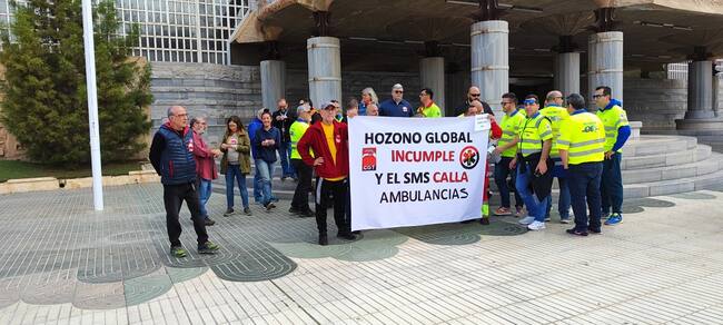 Este miércoles, 22 de marzo, los trabajadores y trabajadores del servicio de Transporte Sanitario de la Región de Murcia han protestado a las puertas de la Asamblea Regional para reivindicar mejoras en sus condiciones laborales y en el servicio que prestan a la ciudadanía.