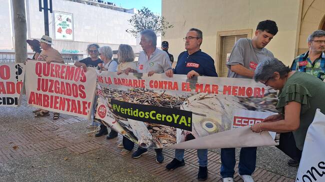 UGT y CCOO y colectivos de defensa del Mar Menor han pedido derechos y justicia para el medio ambiente a las puertas del Palacio de San Esteban.