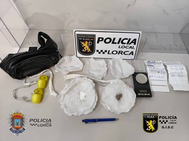 La Policía Local ha detenido en Lorca a un hombre como presunto autor del delito de tráfico de drogas que vendía en una vivienda okupada en el barrio de San Cristóbal en la que han sido intervenidos 3,8 gramos de heroína y 4,1 de cocaína, una balanza de precisión y elementos para su corte y distribución, ha informado el ayuntamiento.