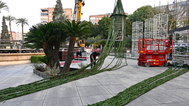 Arranca el montaje de los 35 metros del gran árbol de Navidad de Murcia, que se inaugurará el 6 de diciembre