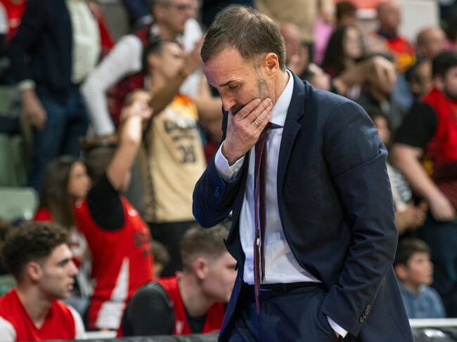 MURCIA, 08/02/2025.- El entrenador de UCAM Murcia Sito Alonso, durante el partido de la vigésima jornada de la Liga Endesa que están disputando este sábado contra La Laguna Tenerife en el Palacio de los Deportes de Murcia. EFE/Marcial Guillén / Marcial Guillén (EFE)