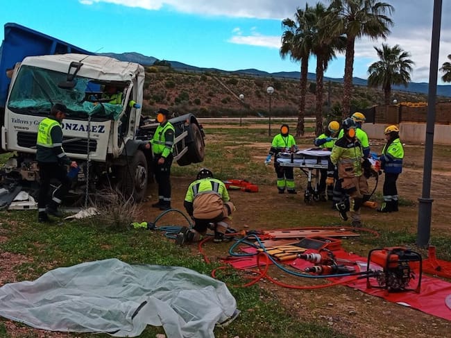 Al lugar del accidente se desplazaron una ambulancia de la Gerencia de Urgencias y Emergencias Sanitarias 061, una patrulla de la Guardia Civil de Tráfico, y efectivos de los Bomberos del Consorcio de Extinción de Incendios y Salvamento de la Región de Murcia (CEIS). Los bomberos tuvieron que realizar una delicada operación de rescate para liberar al conductor, que había quedado atrapado entre los restos de la cabina del camión.