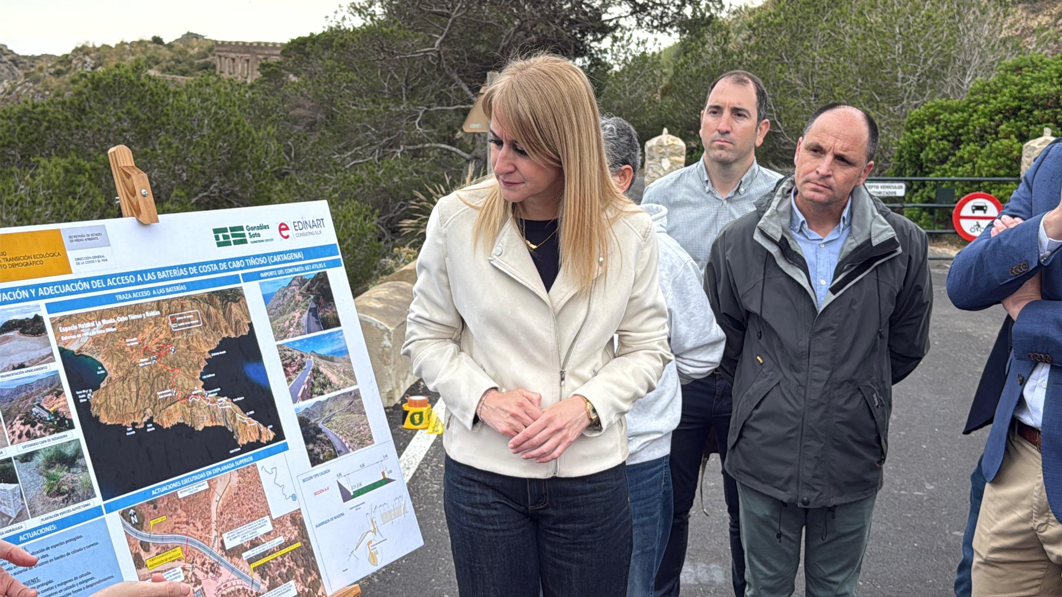 La delegada del Gobierno en la Región de Murcia, Mariola Guevara, ha inaugurado este jueves las obras de mejora y conservación del acceso a las baterías de Cabo Tiñoso, en Cartagena, una actuación financiada por el Ministerio para la Transición Ecológica y el Reto Demográfico con una inversión de 658.000 euros.