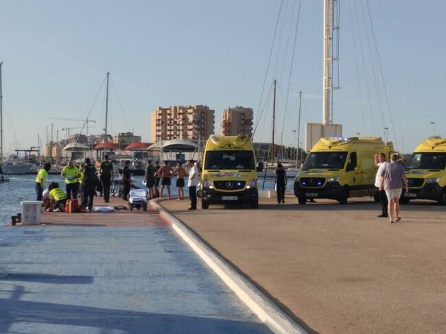 Una vez en el puerto, se informó de la existencia de dos heridos, un niño de 9 años y una mujer de 37. Tras ser estabilizados, fueron trasladados por ambulancias del 061 al hospital Virgen de la Arrixaca de Murcia con heridas muy graves.