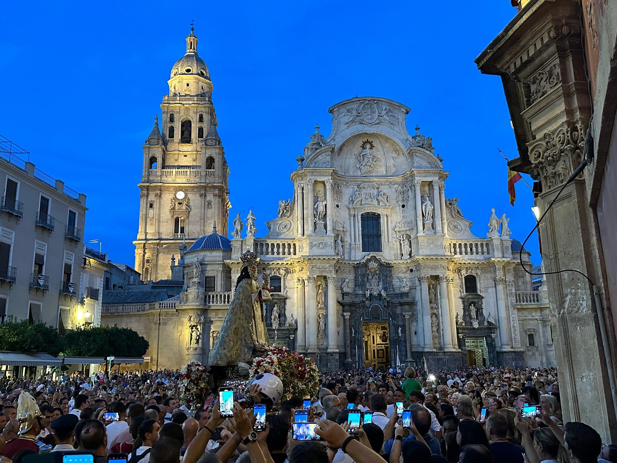 La Virgen de la Fuensanta, Patrona de Murcia, ha llegado esta noche a la Catedral, marcando el inicio oficial de la Feria de Murcia 2025, en una edición especialmente simbólica por el 1200 aniversario de la ciudad.
