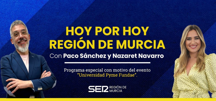 Murcia acoge este miércoles, cinco de noviembre, uno de los encuentros más inspiradores del año: Universidad PYME, un foro diseñado para conectar a jóvenes, pymes, emprendedores y profesionales de todos los sectores interesados en la economía social, la digitalización y las tecnologías emergentes. El programa Hoy por Hoy Región de Murcia de la Cadena SER será testigo y altavoz de las conclusiones de este congreso que tiene como protagonistas a una generación que no solo quiere emprender, sino hacerlo de forma diferente, cooperativa, digital, sostenible y compartida.