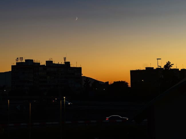En la fotografía, el cielo se tiñe de naranjas y azules mientras la luna se deja ver, anticipando la noche sin que esta haya llegado del todo. "Me encanta que se vea la luna no siendo de noche", comenta Jara sobre esta imagen que combina serenidad y contraste.