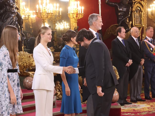 El presidente de la Región de Murcia, Fernando López Miras, saluda a la Princesa Leonor tras su juramento de la Constitución Española como heredera de la Corona el pasado 31 de octubre de 2023 / CARM