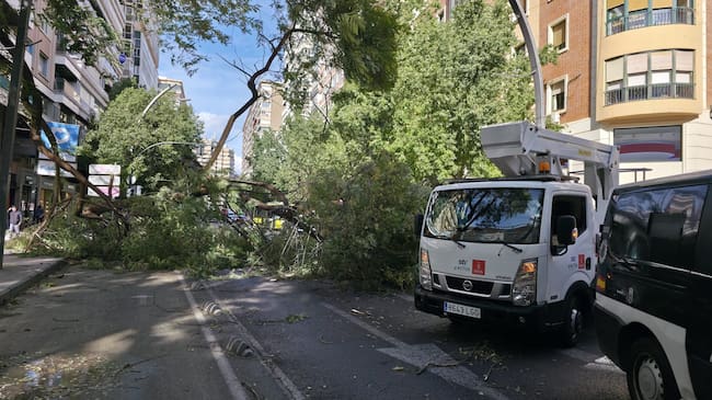 Entre ellas, la caída de una gran rama en la plaza Santa Isabel, que ha invadido la calzada de la Gran Vía y ha bloqueado varios carriles en plena hora punta.