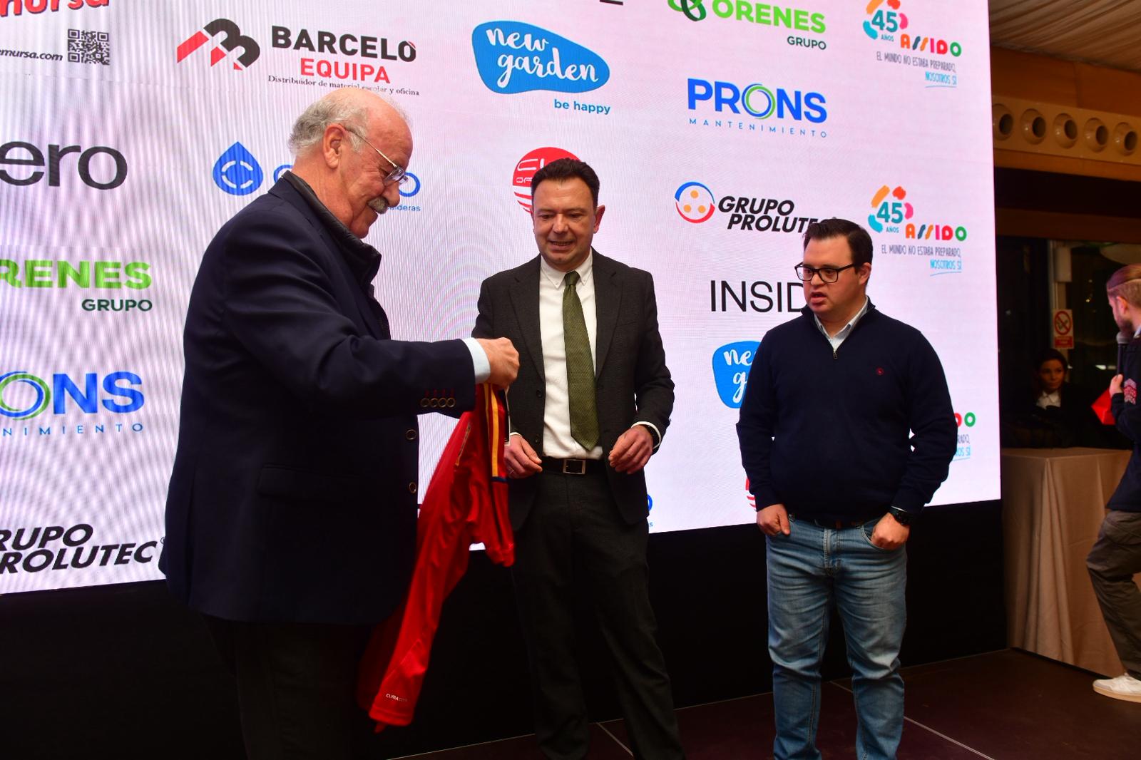 Uno de los momentos más emotivos llegó con el nombramiento de Álvaro del Bosque como Socio de Honor, un reconocimiento que subraya la relación cercana y auténtica que mantiene desde hace años con la entidad y con muchas de las personas usuarias. Álvaro acudió acompañado de sus padres, entre ellos Vicente del Bosque, ya Socio de Honor de ASSIDO, reforzando los lazos que unen a la familia con la asociación.