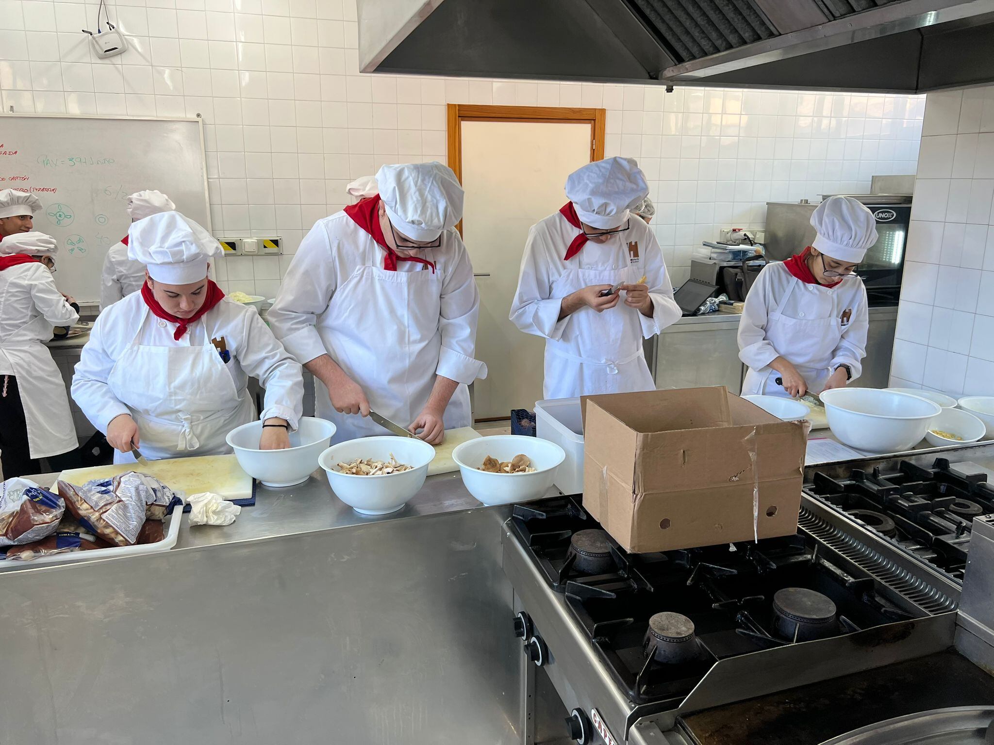 El recorrido por las cocinas revela aparatos de tecnología punta, lo que hoy en día es también este sector. Merche, profesora de segundo de grado medio de cocina, supervisa a 16 alumnos que se mueven entre hornos de última generación y productos internacionales. Ella misma fue alumna del centro con 17 años y sabe que el secreto está en no dejar de estudiar jamás. "La cocina va evolucionando, pero a marchas forzadas", explica Merche, quien subraya que el paladar del cliente también ha cambiado: "Hace 15 o 20 años se llevaban las esferificaciones y ya no se llevan; ahora se busca el producto, la brasa, y eso es lo que intento inculcar a los alumnos".