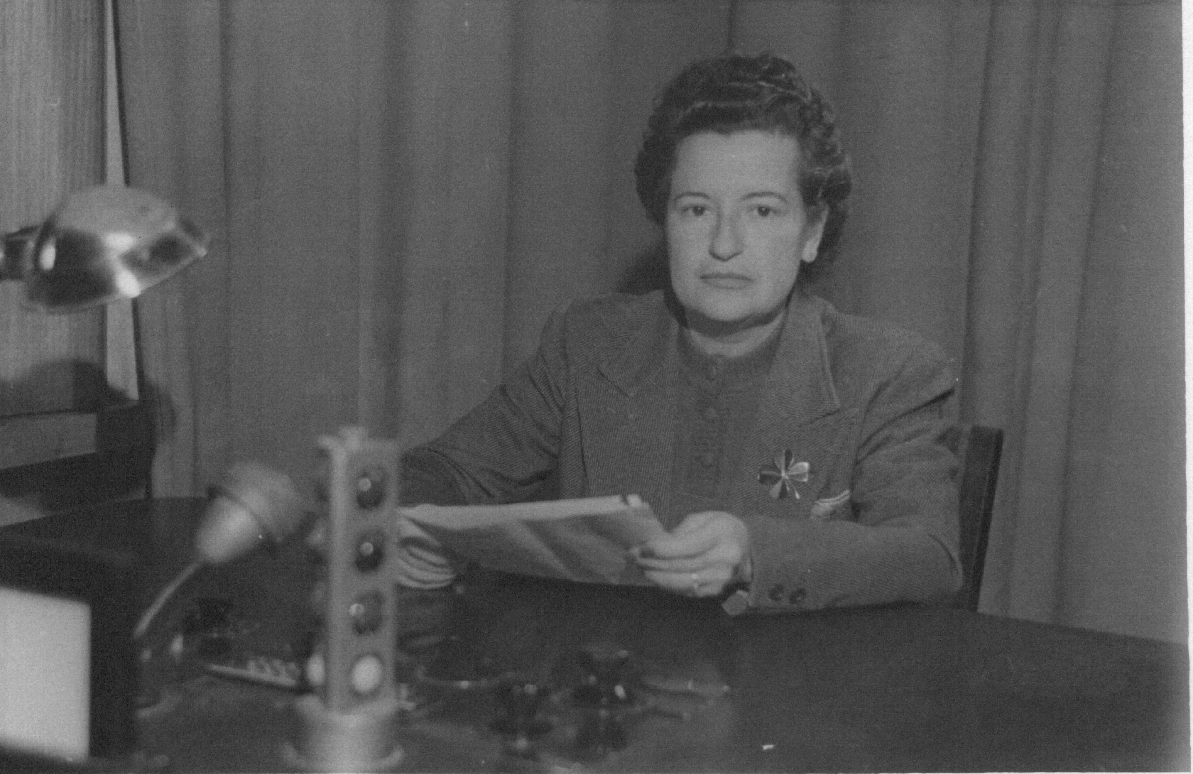 Carmen Conde en Radio Nacional (Madrid), hablando sobre la inauguración del VII Curso para extranjeros, el 15 de abril de 1948 (PCCAO). / Patronato Carmen Carmen