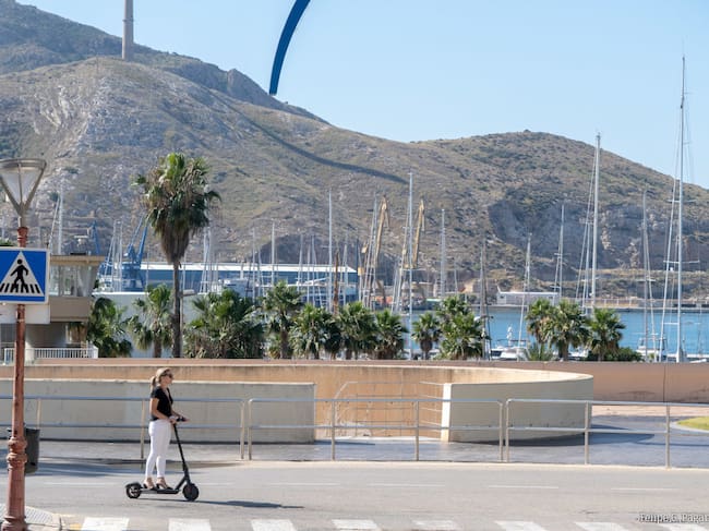 Una mujer se desplaza en patinete / Ayto. Cartagena