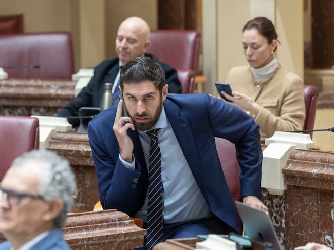 CARTAGENA, 05/03/2026.- El portavoz de Vox en la Asamblea Regional, José Ángel Antelo este jueves durante un momento del pleno. El ex líder provincial de Vox José Ángel Antelo se mantiene este jueves como portavoz de los de Abascal en la Asamblea Regional de Murcia ya que la Mesa de la Cámara, que debe tramitar su expulsión del grupo, no se ha reunido esta mañana antes de la sesión plenaria que se celebra hoy. EFE/Marcial Guillén / Marcial Guillen (EFE)