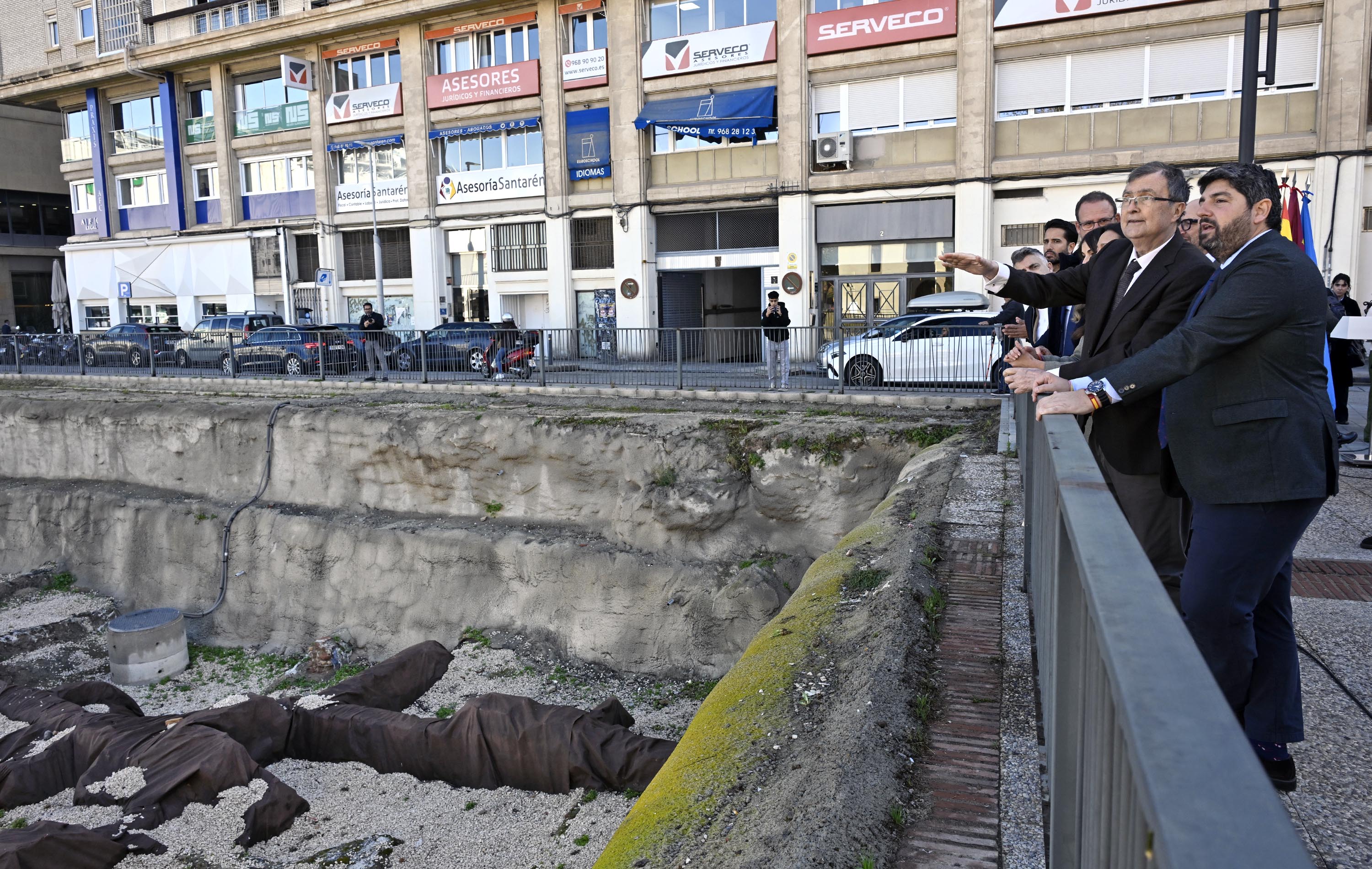 Fernando López Miras y José Ballesta contemplan el inicio de los trabajos en el Yacimiento de San Esteban / JUANCHI LOPEZ