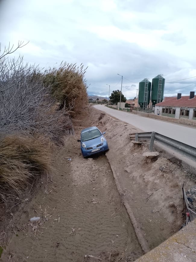 El Camino de Vera es una vía estratégica que conecta la pedanía con el Centro Comercial Parque Almenara, lo que genera un volumen de tráfico muy superior al que su infraestructura puede soportar. Según denuncian los residentes, la carretera se ha convertido en una auténtica "trampa mortal" debido a una combinación crítica de factores: una calzada extremadamente estrecha, la ausencia total de arcenes y el flujo incesante de vehículos. Esta precariedad provoca que cualquier error o cruce entre turismos acabe, como ha sucedido este fin de semana, con coches fuera de la vía o atrapados en el canal de riego.