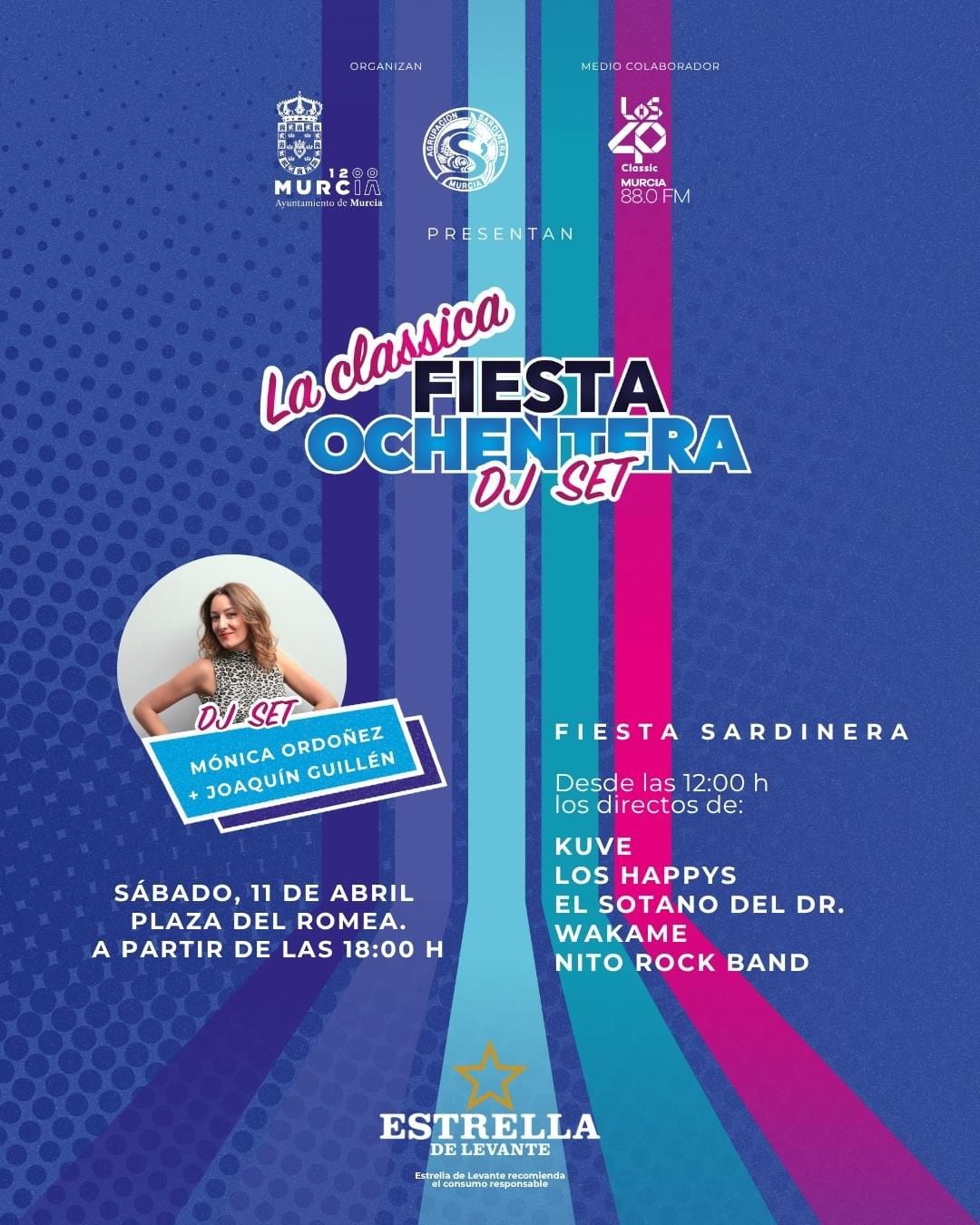 Y el sábado da 11, día del entierro de la Sardina en la Plaza del Romea, con la Clásica Fiesta Ochentera con Monica Ordoñez. Además desde las 12 del mediodía, muchos directos serán también protagonistas con NITO ROCK, WAKAME, KUVE, EL SOTANO DEL DR Y LOS HAPPYS.
