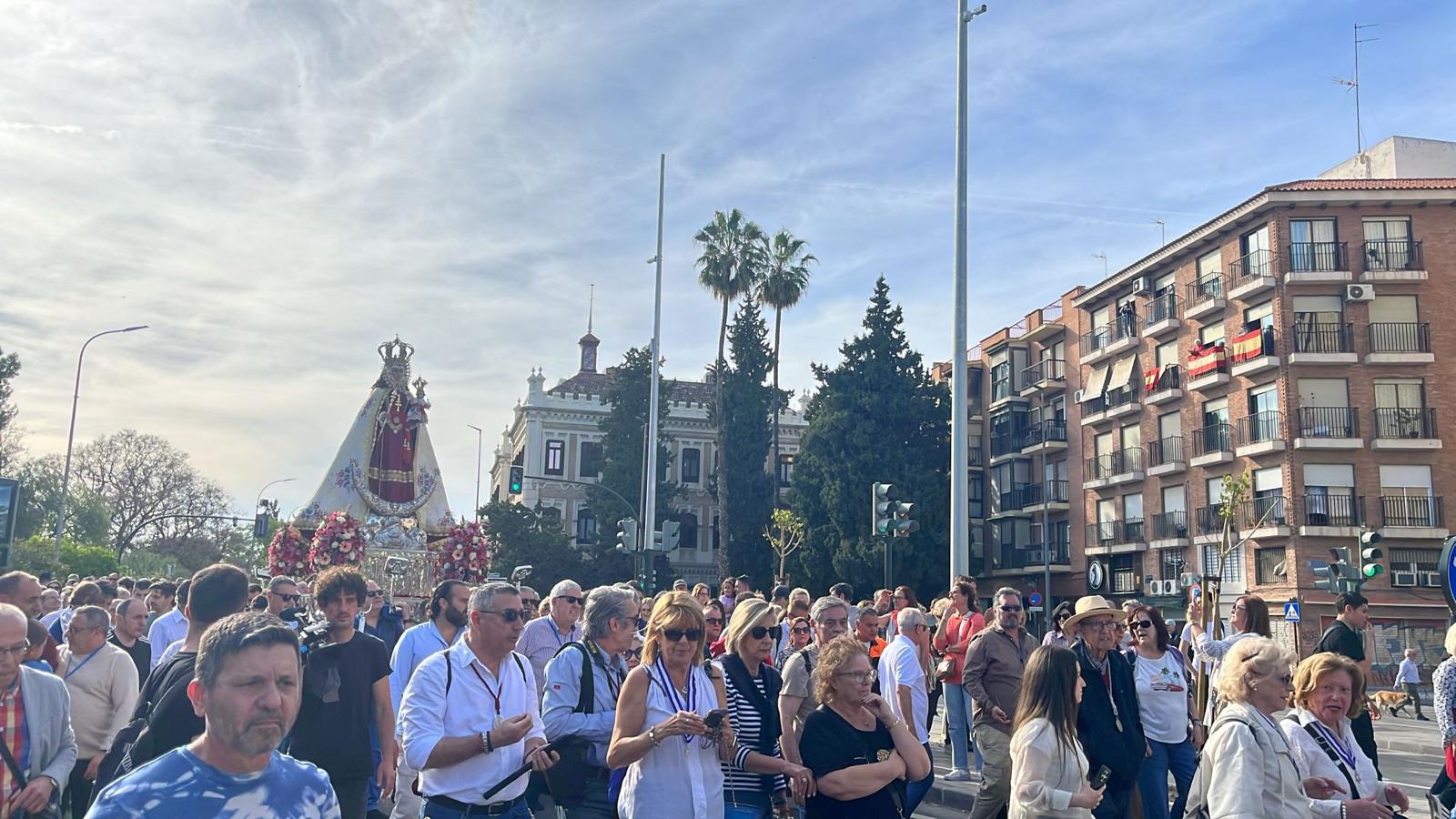 Cientos de personas acompañan a la Virgen de la Fuensanta desde su salida de la catedral