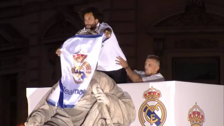 Marcelo fue el encargado de vestir con bufanda y bandera a Cibeles, con beso de despedida. El capitán, jugador con más títulos en la historia del club (25), fue dejando entrever su fin de ciclo. Con el 'We are the champions' terminó el jolgorio en la mítica fuente de la capital, donde se escuchó a los presentes reclamar el Balón de Oro para Benzema. También se acordaron los madridistas, para mal, de un Mbappé que prefirió quedarse en el PSG. El técnico Carlo Ancelotti fue de los más aclamados y, a la vez, más partícipe. El preparador italiano también dirigió los cánticos, junto con Vinicius, en escenas parecidas a las de hace un mes en Cineles tras ganar la Liga.