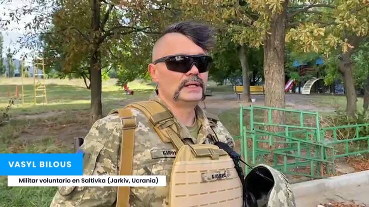 Vasyl Bilous es voluntario militar en este barrio de Járkov. Tiene 47 años y explica a la SER que desde que comenzó la invasión sufren bombardeos "casa semana". La última bomba ha destrozado un pequeño campo de fútbol de este distrito donde vivían medio millón de personas: "Es el distrito más grande de Ucrania pero ahora solo quedan 10.000 personas". Sus habitantes se han ido a otras zonas de Ucrania e incluso a otros países europeos.